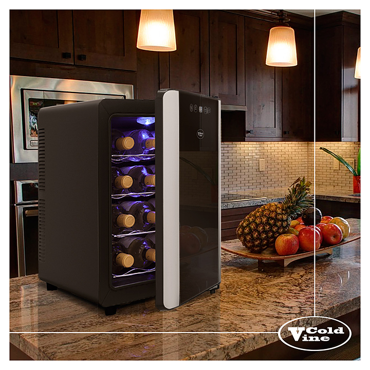 Винный шкаф Cold Vine C12-TBSF1 создает оптимальные условия для сохранения всех вкусовых свойств разливного вина. Модель оснащена встроенным вентилятором, 4 полками из хромированной стали, голубой светодиодной подсветкой и регулируемыми ножками. Корпус выполнен из окрашенной в черный цвет стали, дверь со стальной рамой по периметру - из зеркального тонированного стеклопакета с защитой от УФ-излучения. Особенности: