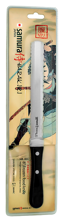 Японский кухонный нож Samura HARAKIRI SHR-0057B/K предназначен для нарезки замороженных продуктов, хлеба и продуктов с мягкой сердцевиной и твердой корочкой на предприятиях общественного питания и торговли, в частных домах и квартирах. Двухсторонняя пилка позволяет выполнять сразу несколько функций. Лезвие выполнено из коррозионно-стойкой однослойной стали AUS-8, ручка - из ABS-пластика. Особенности: