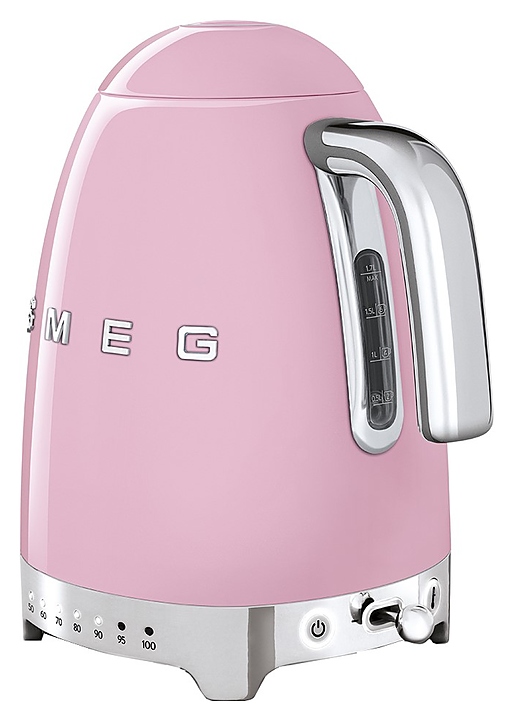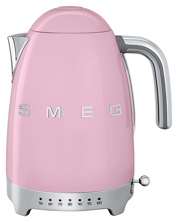 Чайник Smeg KLF04PKEU предназначен для быстрого подогрева воды в частных домах и квартирах. Модель выполнена в стиле 50-х годов. Устройство оснащено световыми индикаторами температуры, съемным моющимся фильтром из нержавеющей стали, отделением для хранения шнура в базе и нескользящими ножками для удобной установки на любой поверхности. Особенности: