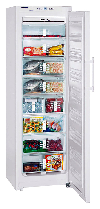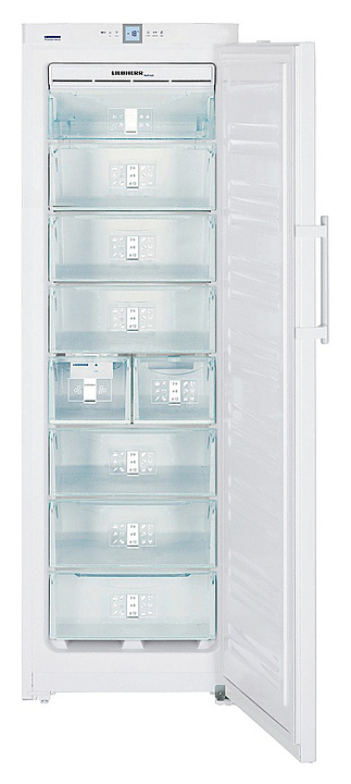 Морозильник Liebherr GN 3076 класса Premium предназначен для заморозки и длительного хранения продуктов и полуфабрикатов в частных домах, квартирах, отелях и офисах. Модель оснащена сенсорным управлением, жидкокристаллическим дисплеем MagicEye и цифровой индикацией температуры. Внутренняя прокладка выполнена из белого полистирола, корпус и дверь - из стали, полки - из стекла. Морозильная камера: