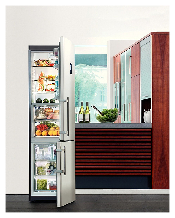 Холодильник Liebherr CBNes 3957 класса Premium предназначен для заморозки, охлаждения и длительного хранения продуктов и полуфабрикатов в частных домах, квартирах, отелях и офисах. Модель оснащена управлением курсором, жидкокристаллическим дисплеем и цифровой индикацией температуры. Внутренняя прокладка и ручка выполнены из нержавеющей стали, дверь - из нержавеющей стали SmartSteel, полки - из стекла. Холодильная камера: