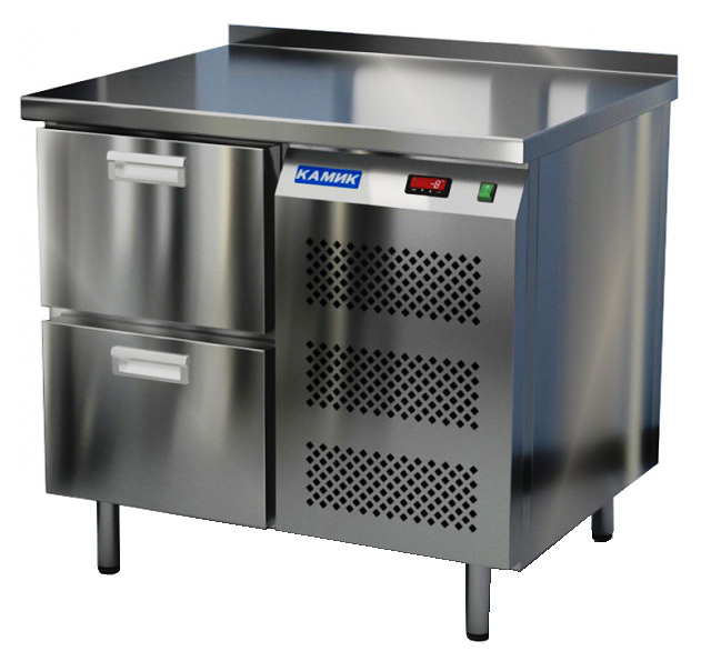 Холодильный стол КАМИК СОБ-0298 используется на предприятиях общественного питания и торговли для охлаждения и хранения продуктов, напитков и готовых блюд. Корпус выполнен из нержавеющей стали AISI 430.