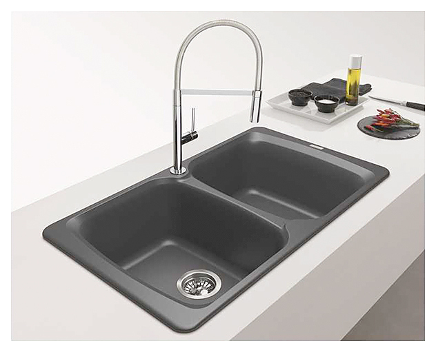 Кухонная мойка Franke AZG 620 серии Comfort предназначена для установки в частных домах, квартирах, офисах, отелях, гостиницах и на различных предприятиях для мытья столовых принадлежностей, посуды, приборов, инвентаря и продуктов питания. Модель оснащена глубокими чашами и 2 отверстиями под смесители, предварительно сформированные с обратной стороны. Изделие выполнено из высококачественного материала Fragranite®, состоящий из кварца и твердой акриловой смолы, который устойчивым к образованию пятен и воздействию высоких температур. Специальная обработка Sanitized® предотвращает размножение бактерий и помогает содержать поверхность мойки в чистоте и поддерживать гигиену. В комплект поставки входят вентиль-автомат. Дополнительные характеристики: