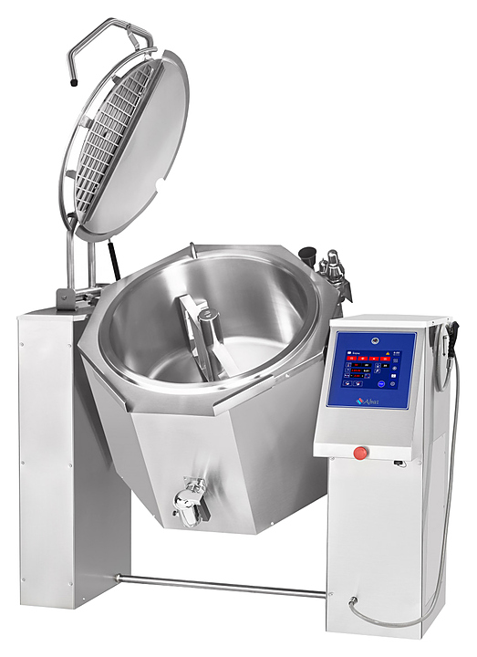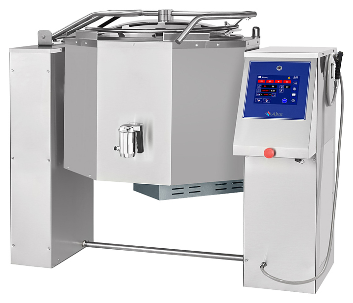 Варочный котел Abat КПЭМ-100-ОМП с функциями опрокидывания, перемешивания и охлаждения предназначен для приготовления вторых и третьих блюд, бульонов, соусов и десертов, а также для кипячения воды на предприятиях пищевой промышленности и общественного питания. Модель оснащена панелью управления с электронным TFT-экраном, пультом программного управления и сливным краном, позволяющим производить слив готового продукта без опрокидывания. Конструкция выполнена из аустенитной нержавеющей стали AISI 304, варочный сосуд - из кислотостойкой нержавеющей стали марки AISI 316. В комплект поставки входит монтажная бетонируемая в пол рама. Режимы работы котла: