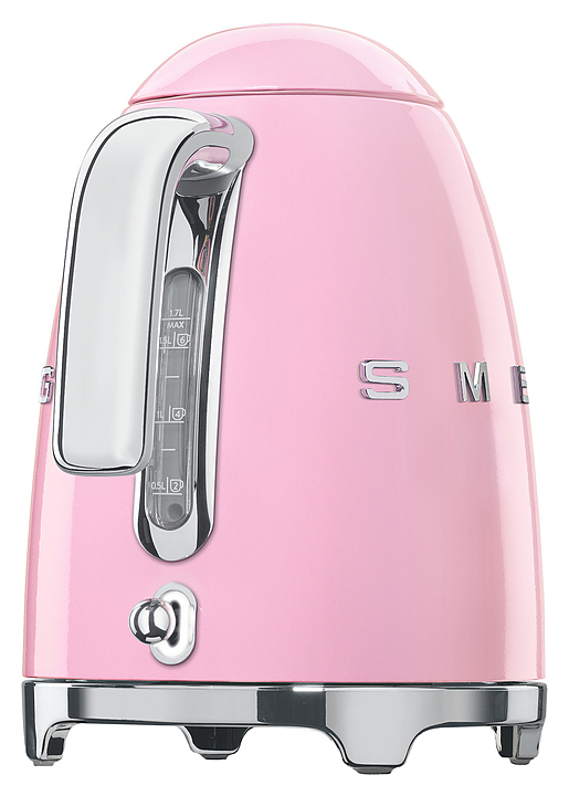 Чайник Smeg KLF03PKEU предназначен для быстрого подогрева воды в частных домах и квартирах. Модель выполнена в стиле 50-х годов. Устройство оснащено съемным моющимся фильтром из нержавеющей стали, отделением для хранения шнура в базе и нескользящими ножками для удобной установки на любой поверхности. Особенности: