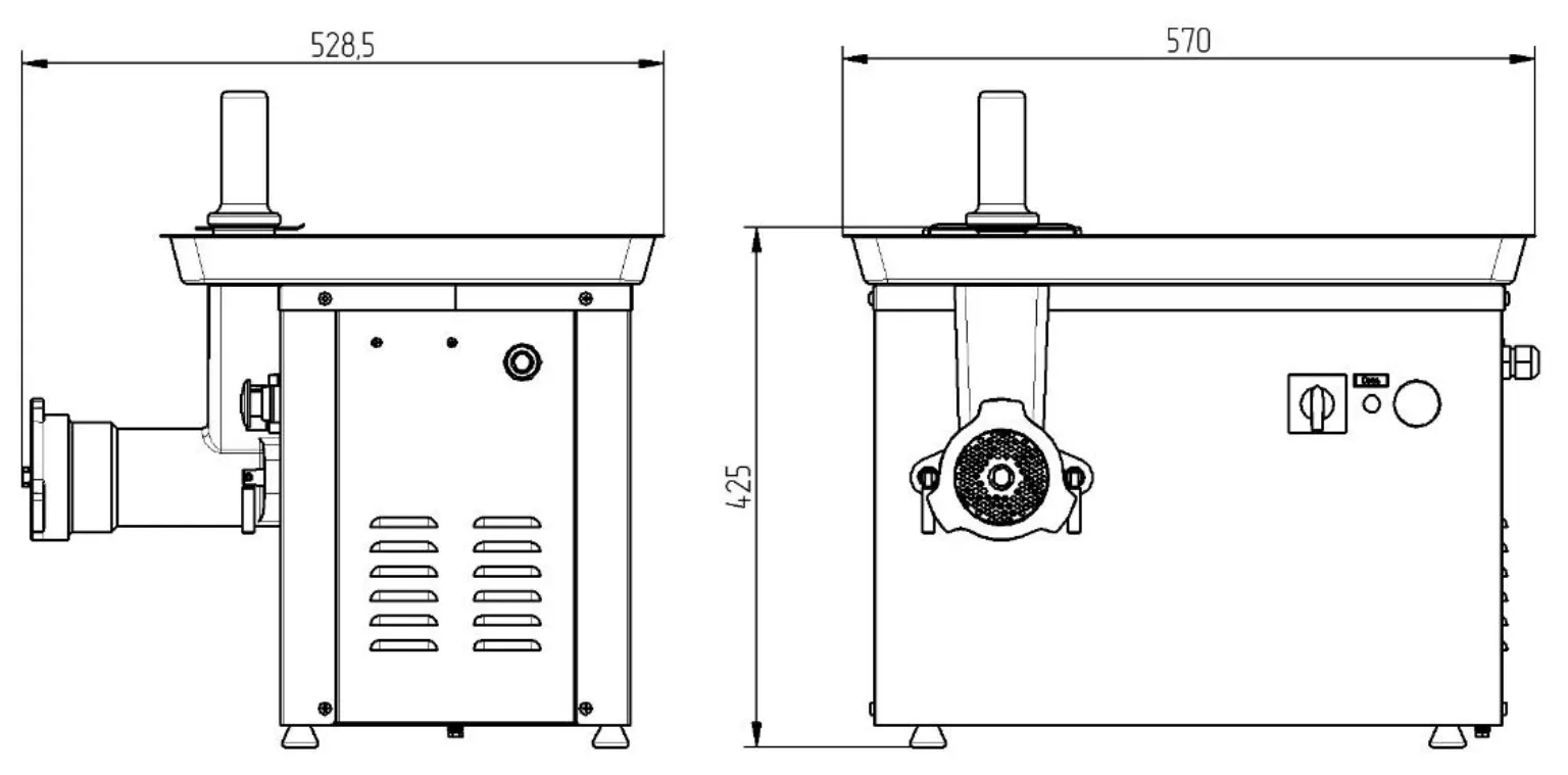 Мясорубка Abat МЭП-300Н используется на предприятиях общественного питания и торговли для измельчения мяса и рыбы при производстве фарша, повторного измельчения котлетной массы и набивки колбас. Модель оснащена регулируемыми по высоте ножками. Корпус, шнек, зажимная гайка, лоток и облицовка выполнены из высококачественной нержавеющей стали. В комплект поставки входят нож подрезной, двусторонний нож с крупной решеткой и двусторонний нож с мелкой решеткой. Особенности:
