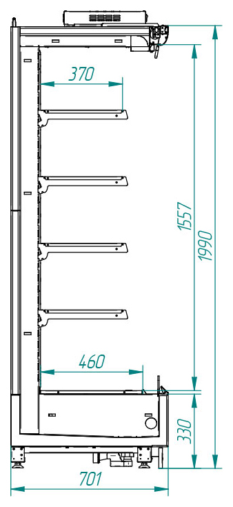 Холодильная горка Italfrigo Lazio L7 BOX 2500 Д предназначена для демонстрации, охлаждения и кратковременного хранения мяса, птицы, рыбы, колбасных, молочных и гастрономических изделий на предприятиях общественного питания и торговли. Боковые панели обшиты листовой сталью, фронтальная панель козырька выполнена из алюминия, базовые поддоны - из крашеного оцинкованного металла, а внутренняя поверхность ванны - из оцинкованного пластификата.