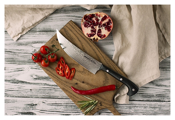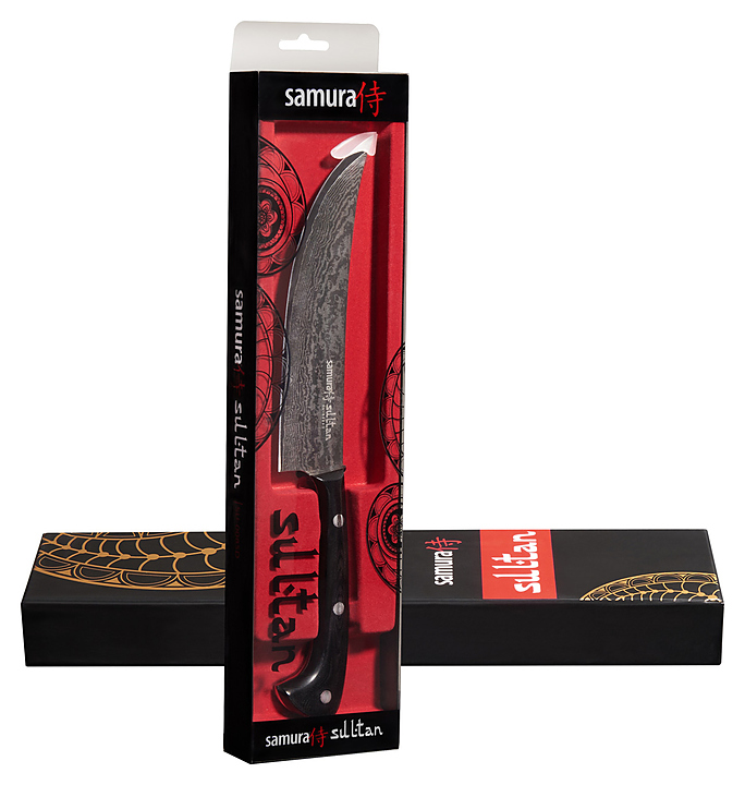 Японский нож Samura Sultan SU-0086D/K предназначен для нарезки колбасы и сыра на аккуратные ломтики на предприятиях общественного питания и торговли, в частных домах и квартирах. Тонкое лезвие обеспечивает его быстрое проникновение в мясо, при этом не давит и не выжимает сок. Лезвие выполнено из 67-слойной дамасской стали AUS-8, ручка - из стеклоткани G-10. Особенности: