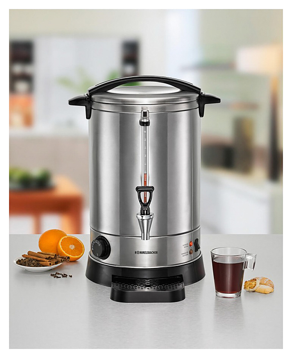 Кипятильник Rommelsbacher GA 1700 используется в квартирах, частных домах, кафе и ресторанах для нагрева большого количества воды и приготовления горячих напитков. Модель оснащена терморегулятором, 2 световыми индикаторами, защитой от перегрева и кипения воды и сливным краном. Корпус выполнен из нержавеющей стали. Прибор имеет cтильный современный дизайн, удобен и прост в использовании. Особенности: