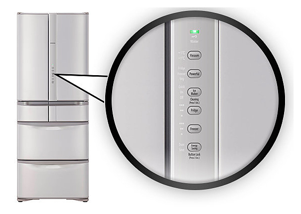 Индикаторы включения питания, защиты от детей, отключения питания, температуры холодильного и морозильного отделений