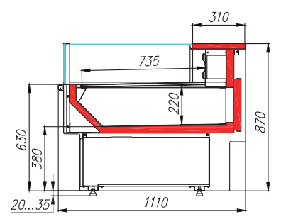 Открытая холодильная витрина Carboma GC110 SM 0,94-2-1 (ВХСо-0,94 GC110) используется на предприятиях общественного питания и торговли для охлаждения, кратковременного хранения, демонстрации и продажи продуктов питания, салатов, молочных и других гастрономических изделий. Модель оснащена дополнительным запасником и регулируемыми ножками высотой от 20 до 35 мм. Поверхность выкладки и столешница выполнены из шлифованной нержавеющей стали. Отдельностоящие витрины приобретаются только вместе с боковинами. При заказе нескольких витрин с одинаковым температурным режимом для установки в линию достаточно заказать 2 боковины на всю линию. Передняя панель может быть выполнена из окрашенной или нержавеющей стали или из МДФ. Холодильный агрегат в комплект поставки не входят и приобретаются отдельно. Особенности: