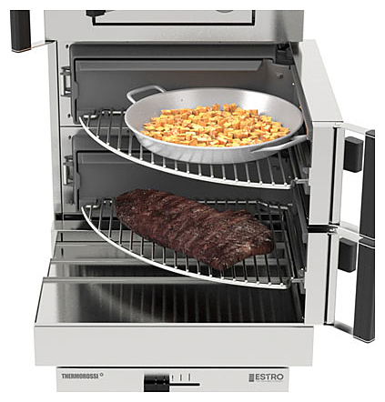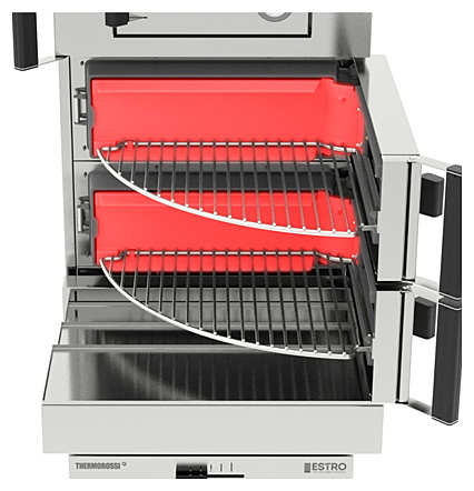 Угольная печь ESTRO PRO 3 предназначена для приготовления широкого спектра блюд из мяса, птицы, рыбы и овощей на предприятиях общественного питания и торговли. Модель оснащена лотком для загрузки топлива и сбора золы на телескопических направляющих. Камеры выполнены из чугуна, решетки для гриля - из нержавеющей стали.