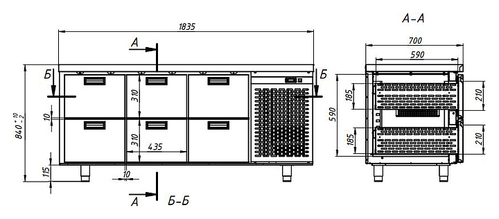 Холодильный стол Техно-ТТ СПБ/О-123/06-1807 предназначен для раскатки теста, обработки, охлаждения и кратковременного хранения продуктов и напитков на предприятиях общественного питания и торговли. Модель оснащена 3 секциями с 6 ящиками, направляющими с доводчиками (Австрия) и круглыми ножками, регулируемыми по высоте на 50 мм. Корпус выполнен из нержавеющей стали AISI 430, задняя стенка и дно - из оцинкованной стали. Стол поставляется в собранном виде. Особенности: