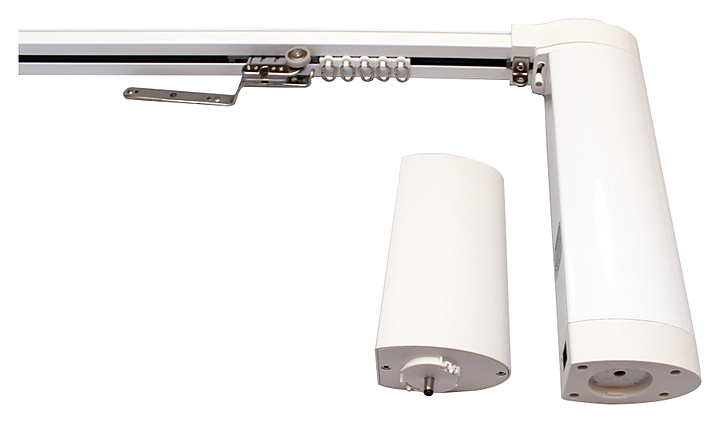 Электрокарниз AIR MOTOR 7800 предназначен для полностью удаленного регулирования положения раздвижных штор в жилых и коммерческих помещениях со стандартными и высокими окнами и потолками. Модель управляется с помощью пульта дистанционного управления или установленного на стену стационарного блока. Карниз выполнен из стального профиля белого цвета толщиной 1,8 мм. В комплект поставки не входит зарядное устройство. Особенности: