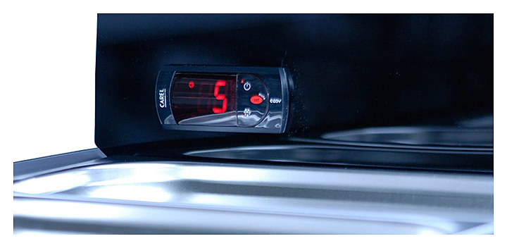 Холодильная витрина Movilfrit (Pira) TOP 6 307016 предназначена для демонстрации и кратковременного хранения готовых блюд и напитков на предприятиях общественного питания и торговли. Модель оснащена светодиодной подсветкой. Корпус выполнен из черного анодированного алюминия, верхняя часть - из закаленного стекла, внутренняя часть - из нержавеющей стали AISI 304. Особенности: