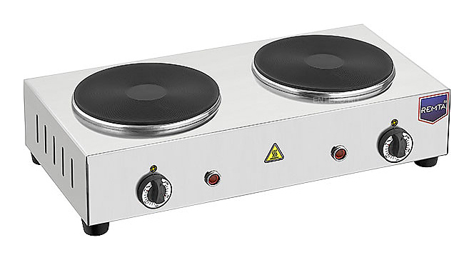 Электрическая плита Remta PLT2 предназначена для приготовления различных блюд в наплитной посуде на предприятиях общественного питания и торговли. Модель оснащена световым индикатором и автоматическим термостатом. Корпус выполнен из нержавеющей стали. Дополнительные характеристики:
