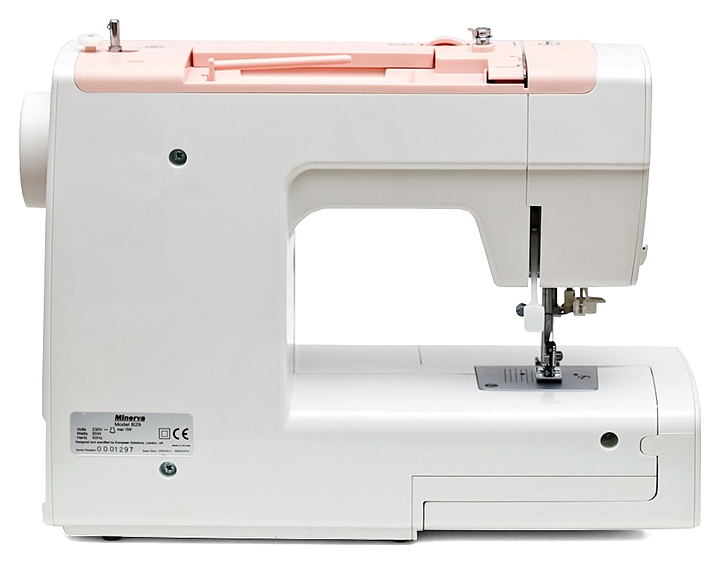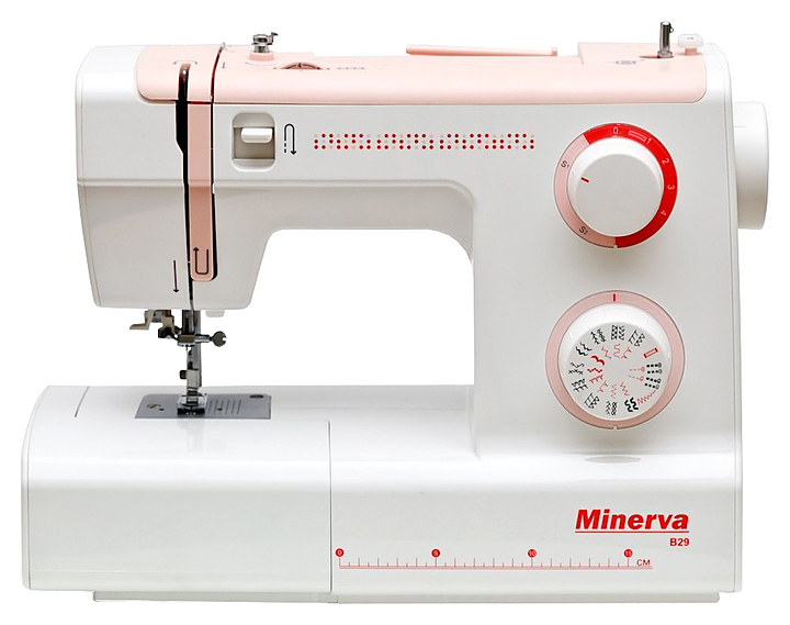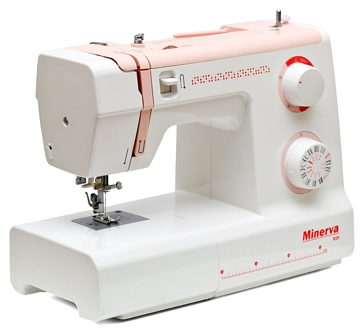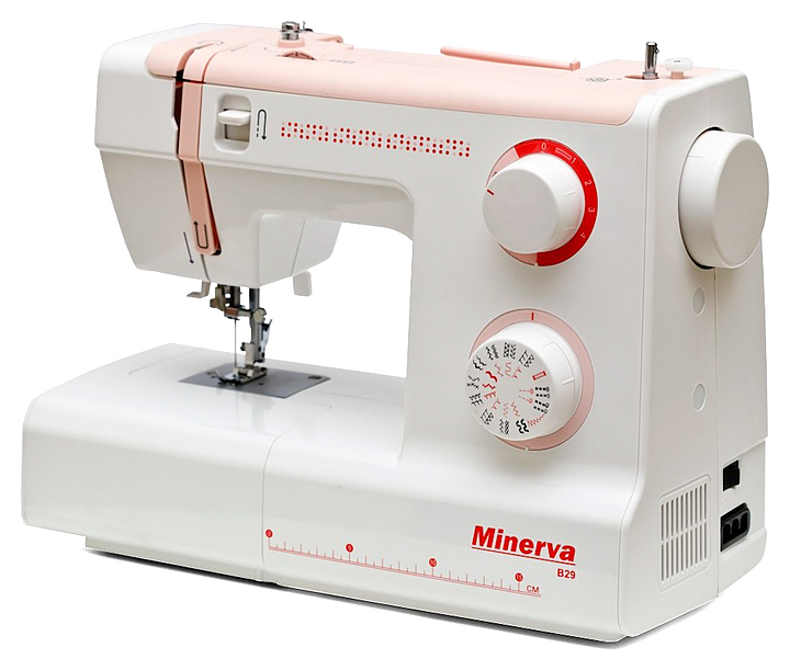 Швейная машина Minerva B29 используется в квартирах, коттеджах и частных домах для сшивания и отделки деталей из различных видов тканей. Модель оснащена электромеханическим управлением, 2 дисками регулировки, LED-подсветкой, отсеком для хранения аксессуаров и ручкой для переноски. В комплект поставки входят 3 шпульки, 4 лапки (универсальная, для вшивания молнии, для петли, для пришивания пуговиц), фетровый амортизатор для катушек, 3 держателя катушки, 3 упаковки игл, масленка, L-образная отвертка, направляющая для выстегивания, кисточка-вспарыватель, педаль и мягкий чехол. Особенности: