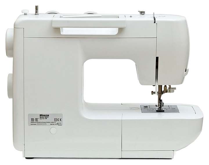 Швейная машина Minerva M921 используется в квартирах, коттеджах и частных домах для сшивания и отделки деталей из различных видов тканей. Модель оснащена электромеханическим управлением, 3 дисками регулировки, LED-подсветкой, отсеком для хранения аксессуаров и ручкой для переноски. В комплект поставки входят 3 шпульки, 5 лапок (универсальная, для вшивания молнии, для петли, для пришивания пуговиц, для оверлочного устройства), фетровый амортизатор для катушек, 3 держателя катушки, 3 упаковки игл, 2 отвертки, направляющая для выстегивания, кисточка-вспарыватель, педаль и мягкий чехол. Особенности: