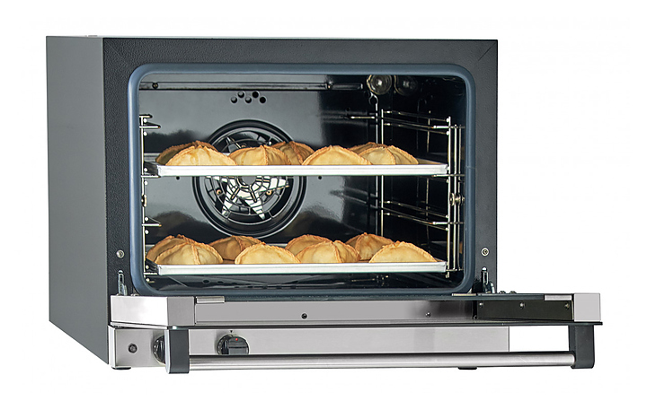 Конвекционная печь Abat КПП-4М предназначена для выпечки хлебобулочных и кондитерских изделий, приготовления и разогрева блюд из мяса, рыбы и овощей на предприятиях общественного питания и торговли. Модель оснащена регулируемыми по высоте ножками. Корпус и внутренняя поверхность выполнены из эмалированного металла. Противни 460x330 мм в комплект поставки не входят и приобретаются отдельно. Основные характеристики: