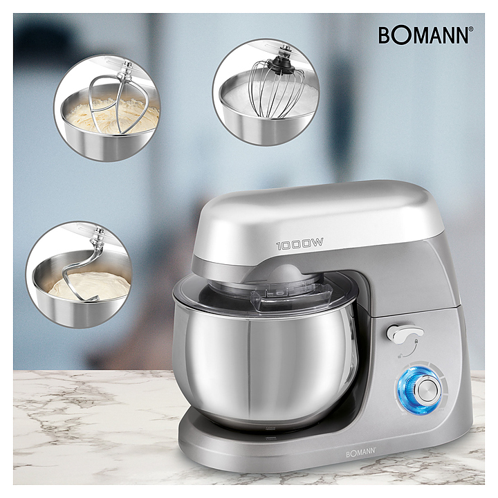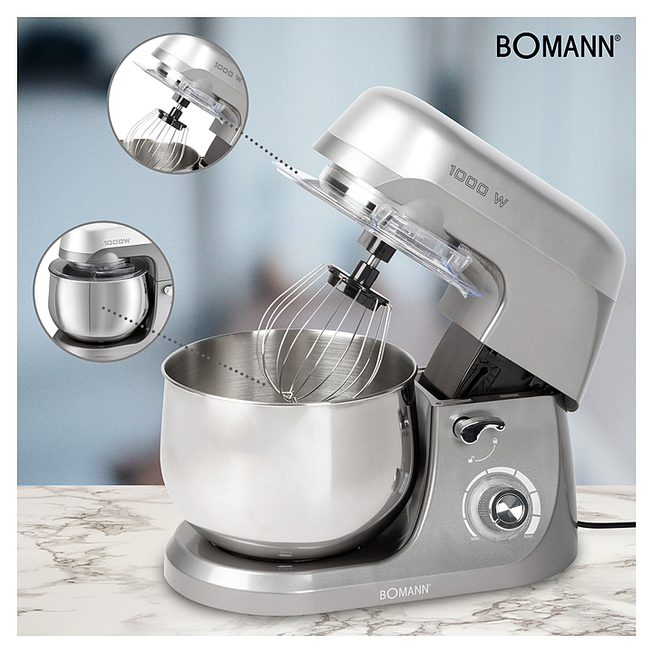Кухонный комбайн Bomann KM 6009 CB предназначен для замеса теста, смешивания и взбивания различных продуктов в квартирах, частных домах, кафе и ресторанах. Модель оснащена электромеханическим управлением, защитой от перегрева, быстрозажимными патронами для легкой смены насадок и подъемным на 35° механизмом для смены насадок или установки / снятия чаши. Чаша и венчик выполнены из нержавеющей стали, насадки для теста - из алюминия. Кухонный комбайн имеет cтильный современный дизайн, удобен и прост в использовании. Особенности: