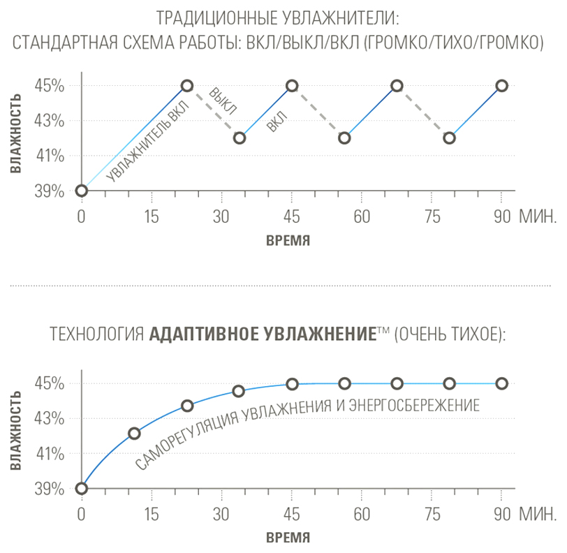 • Уровень влажности: от 30 до 75% (с шагом 5%)