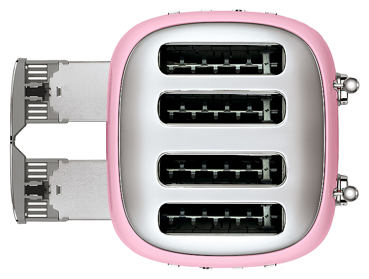 Тостер Smeg TSF03PKEU используется для обжаривания ломтиков тостового хлеба. С помощью дополнительно приобретаемых держателей тостер также можно применять для подогрева булочек или сэндвичей. Прибор отличается уникальным дизайном благодаря исполнению в стиле 50-х годов. В комплект поставки входят 2 съемных поддона из нержавеющей стали для крошек. Особенности: