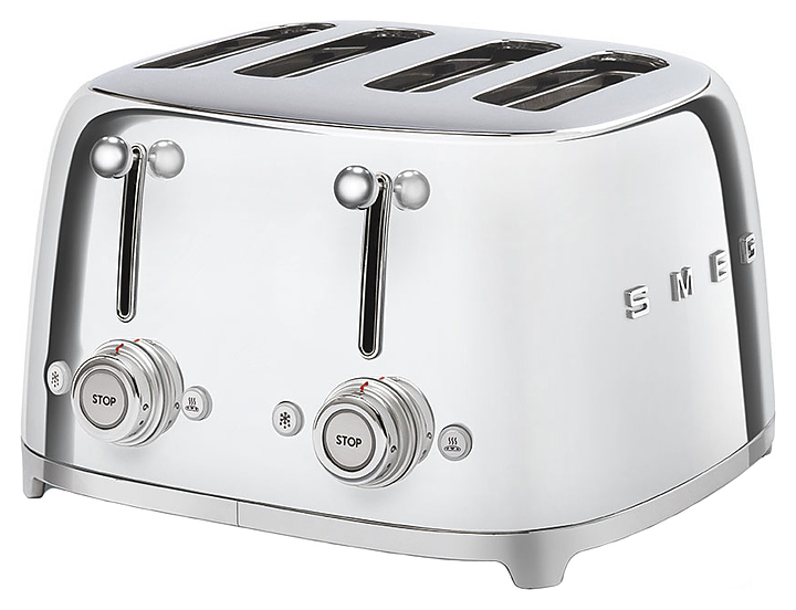 Тостер Smeg TSF03SSEU используется для обжаривания ломтиков тостового хлеба. С помощью дополнительно приобретаемых держателей тостер также можно применять для подогрева булочек или сэндвичей. Прибор отличается уникальным дизайном благодаря исполнению в стиле 50-х годов. В комплект поставки входят 2 съемных поддона из нержавеющей стали для крошек. Особенности: