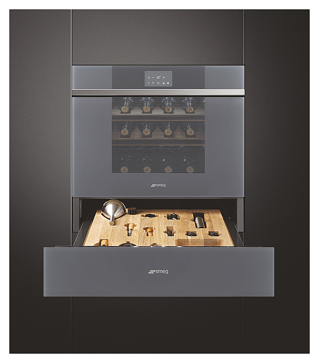 Ящик сомелье Smeg CPS115S используется совместно с винными шкафами серии Linea 45 см в барах, ресторанах, специализированных магазинах, частных домах, квартирах, отелях и офисах. Деревянный футляр для хранения аксессуаров выполнен из скального дуба, профиль - из нержавеющей стали. Комплектация: