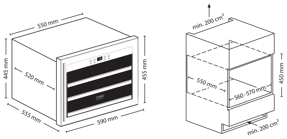 Встраиваемый винный шкаф CASO WineSafe 18 EB предназначен для охлаждения и длительного хранения бутилированного и разливного вина в частных домах, квартирах, отелях и офисах. Модель оснащена панелью управления c белым LED-дисплеем, показывающим текущую температуру, и 3 деревянными выдвижными полками. Дверная рама и ручка выполнены из черной стали, дверца - из 3-слойного стекла с ультрафиолетовым фильтром. Особенности: