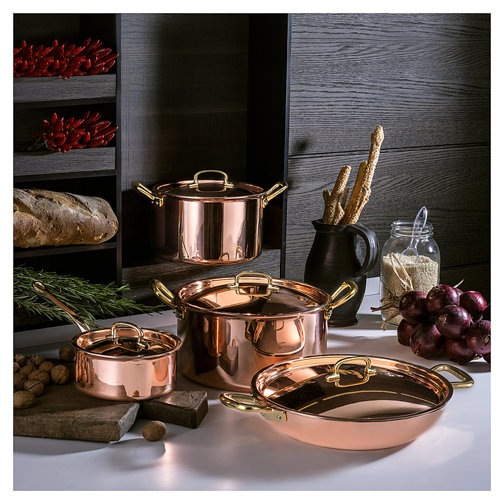 Сотейник Ruffoni 25208-26 используется на предприятиях общественного питания для приготовления широкого спектра блюд. Модель оснащена 2 фиксированными ручками. Сотейник подходит для использования со всеми видами плит, кроме индукционных. Изделие выполнено из листовой меди, обеспечивающей максимальную теплопроводность и контроль температуры, ручки - из бронзы со стальными клепками, внутренняя поверхность покрыта безопасной нержавеющей сталью. Крышка нужного размера в комплект поставки не входит и приобретается отдельно. Особенности: