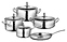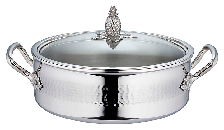 Набор посуды Ruffoni OMEGNA-5 используется на предприятиях общественного питания для приготовления широкого спектра блюд. Набор состоит из кастрюль VPA2012X и VPA2412X, сотейников VPA1811Z и VPA2609X и сковороды VPC2605Z. Модели оснащены фиксированными ручками с растительным декором и крышками с ручкой в форме ананаса и подходят для использования со всеми видами плит, кроме индукционных. Изделия выполнены из многослойного металла, состоящего из чередующихся слоев нержавеющей стали и алюминия, крышки - из стекла, боковые ручки, заклепки и винты - из нержавеющей стали. Особенности: