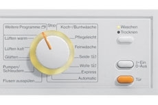 Для выбора необходимой программы в стирально-сушильной машине Miele достаточно всего лишь одного поворота переключателя. Нажав кнопку, Вы сможете задать программу стирки, сушки или стирки с последующей сушкой белья.