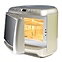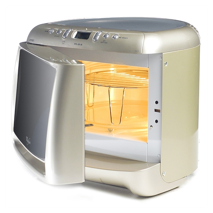 Whirlpool MAX 28 – единственная микроволновая печь, которая помещается в угол.Микроволновая печь MAX28 «построена» вокруг поворотного стола. Внутри нее находится большой поворотный стол диаметром 28 см, но принципиально новая форма этой модели делает ее гораздо более компактной экономя много места. Задняя стенка печи повторяет закругленную линию поворотного стола, что дает возможность поставить печь в угол и освободить еще больше места на рабочем столе. Особая верхняя стенка, на которую можно ставить блюда, когда вы работаете с ними, или горячие блюда для остывания, делает эту модель еще привлекательнее.