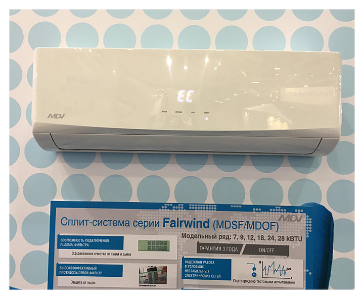 Цифровой дисплей - отображает заданную температуру охлаждения или обогрева, режимы работы и коды неисправностей в случае их возникновения, вся отображаемая информация легко воспринимается