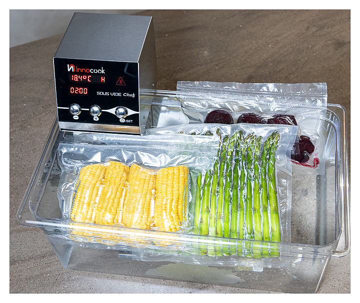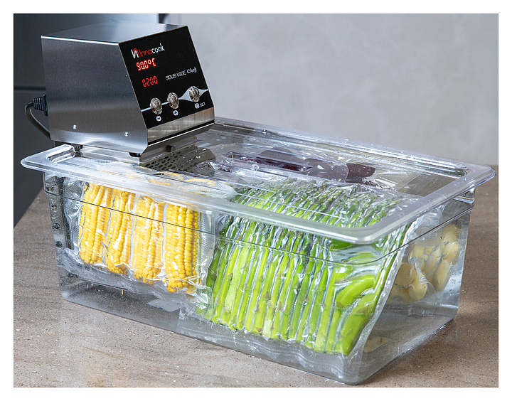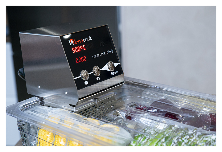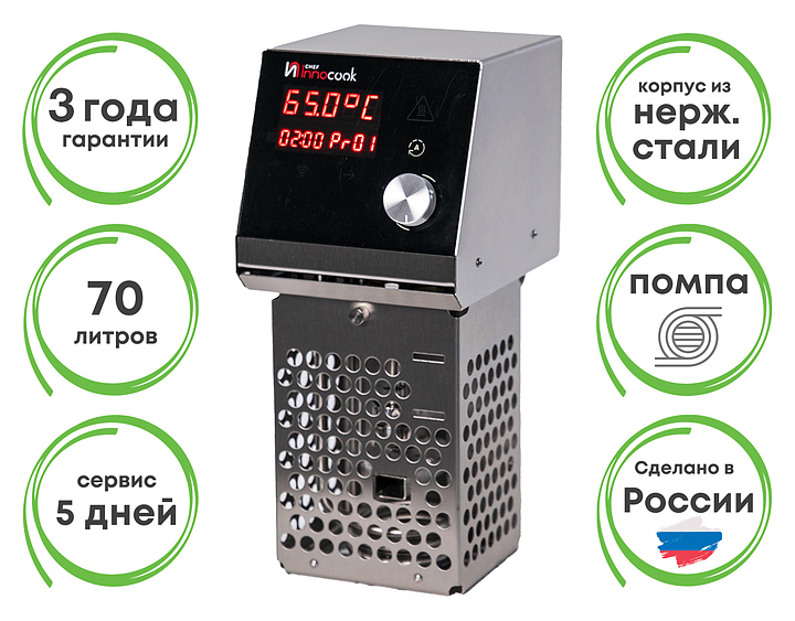 Ротационный кипятильник InnoCook Chef предназначен для приготовления широкого спектра блюд по технологии Sous Vide на предприятиях общественного питания и торговли. Модель оснащена электромеханической панелью управления. Корпус полностью выполнен из пищевой нержавеющей стали. Особенности: