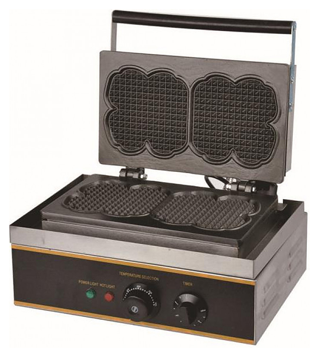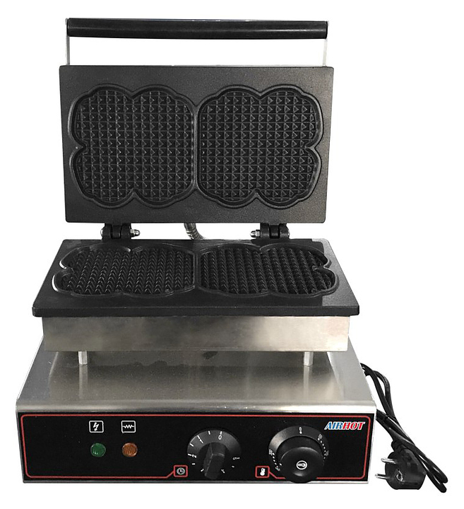Вафельница Airhot WBF-2F используется на предприятиях общественного питания и торговли для выпекания вафель в форме цветков. Каждая вафля может быть наполнена начинкой. Модель оснащена терморегулятором и электронным таймером. Корпус выполнен из нержавеющей стали, жарочная поверхность - из алюминия с антипригарным покрытием. Дополнительные характеристики:
