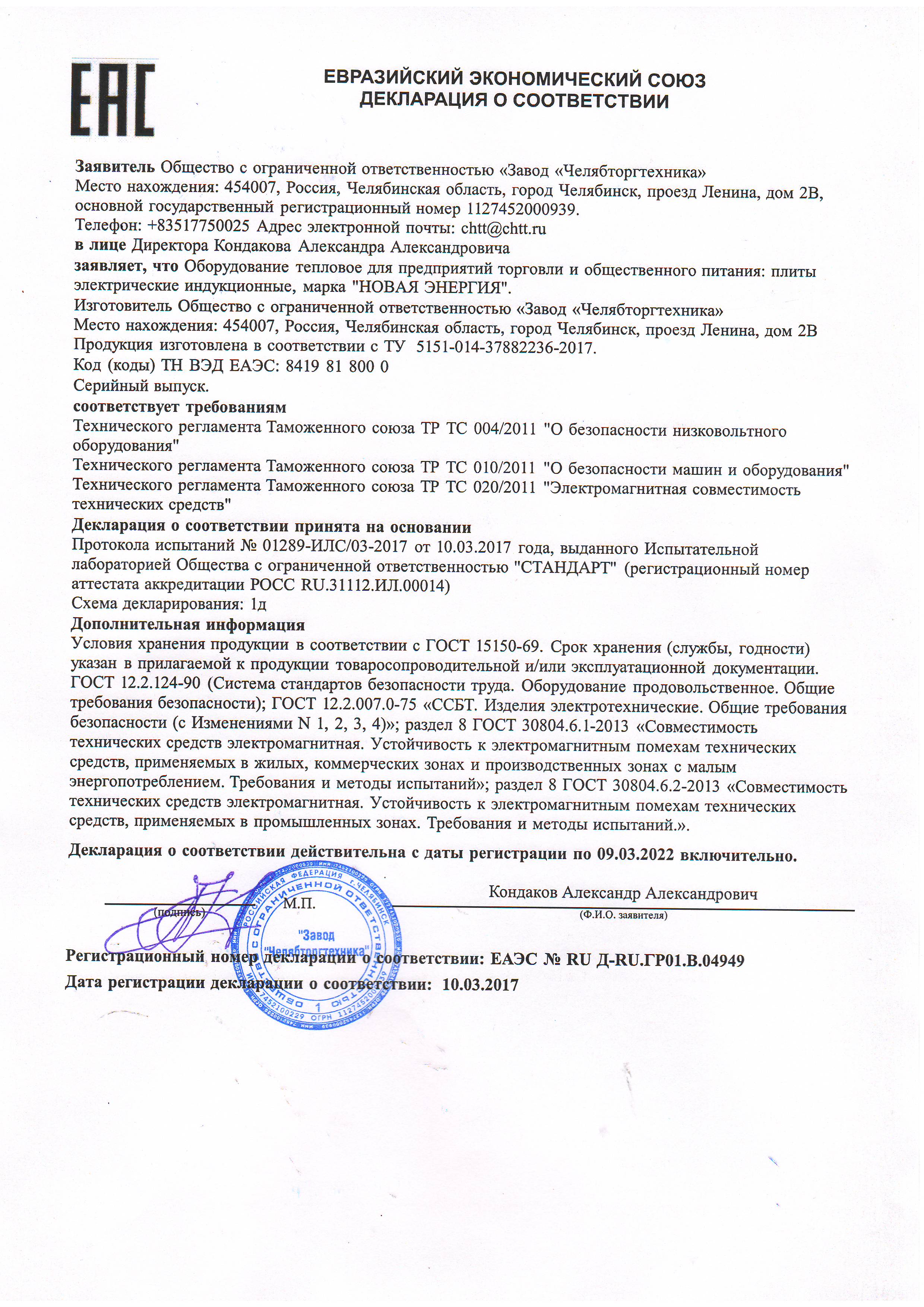Индукционная плита Новая Энергия ПЭИ-2/L1 предназначена для приготовления различных блюд в наплитной посуде на предприятиях общественного питания и торговли. Модель оснащена боковыми планками для обеспечения вентиляции и регулируемыми опорами. Корпус выполнен из нержавеющей стали марки AISI 430 толщиной 1,2 мм, рабочая поверхность- из закаленного стекла 8 мм, ножки - из нержавеющей трубы 40х40 мм. Рекомендуется использовать специальную посуду из материала с подходящими характеристиками, который бы эффективно поглощал энергию магнитного поля. Особенности: