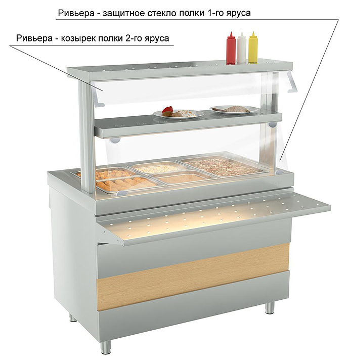 Козырек ATESY Ривьера используется на предприятиях общественного питания и торговли совместно с двух- и трехъярусными полками одноименной линии раздачи питания. Козырек позволяет защитить продукты и готовые блюда от попадания посторонних частиц и пыли. Внимание! На фото аналогичная модель другого размера. Видео