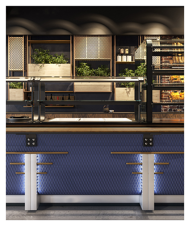 • Ниша со стороны рабочего персонала, которую можно использовать для хранения кухонной утвари