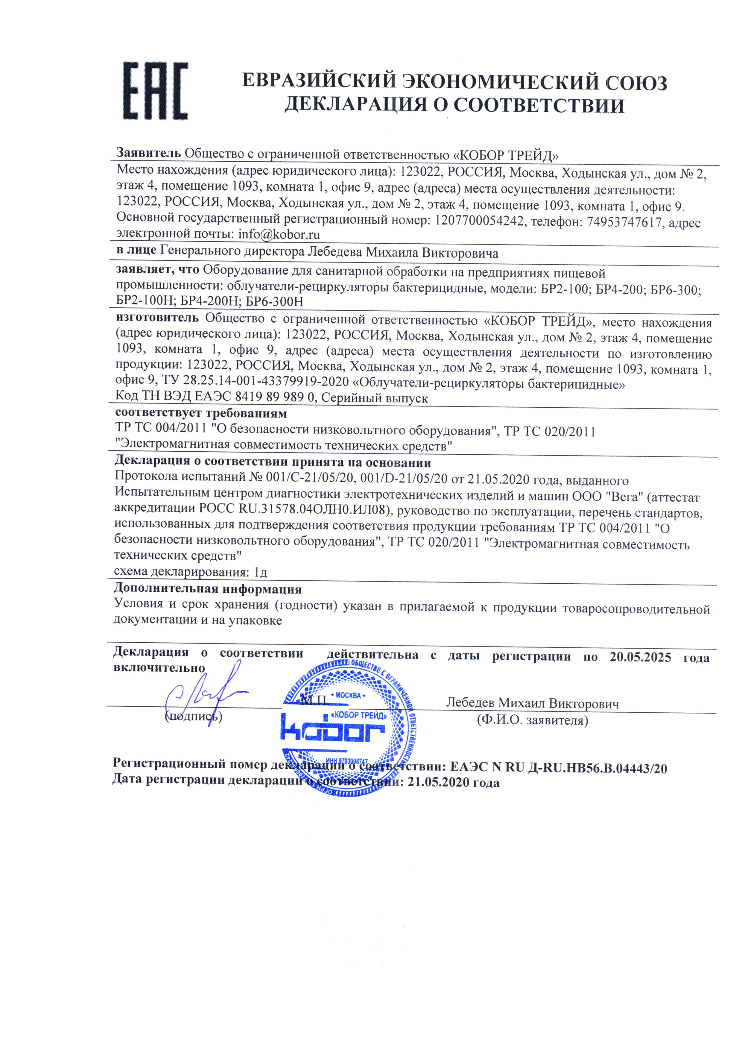 Бактерицидный рециркулятор Кобор БР4-200 используется на предприятиях общественного питания и торговли, в офисах, образовательных и медицинских учреждениях, а также в других местах общественного пользования для обеззараживания воздуха в помещениях. Модель работает на 4 бактерицидных лампах, производящих ультрафиолетовое излучение, которое губительно влияет на практически все известные вирусы, болезнетворные бактерии и грибы. Корпус выполнен из крашеного металла. Особенности: