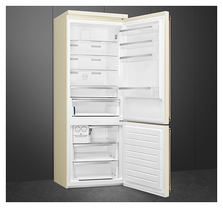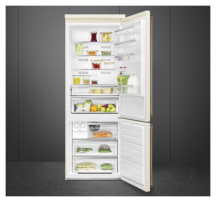 Холодильник Smeg FA8005RPO серии Coloniale предназначен для охлаждения и кратковременного хранения продуктов, полуфабрикатов и напитков, замораживания и длительного хранения свежих продуктов, а также для приготовления пищевого льда в домашних условиях. Модель оснащена электронной системой управления и внутренним LED-дисплеем. Корпус выполнен из окрашенного метала, фурнитура - из латуни. Холодильное отделение: