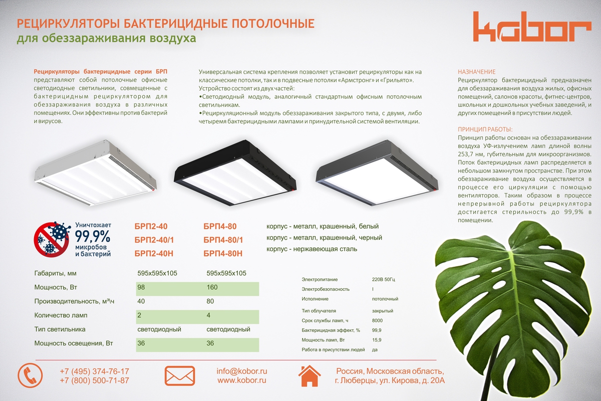 Рециркулятор бактерицидный КОБОР БРП4-80