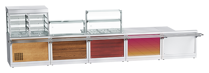 Прилавок для горячих напитков Abat ПГН-70Х используется в составе линии раздачи HOT-LINE на предприятиях общественного питания и торговли для кратковременного хранения и раздачи потребителю хлебобулочных и кондитерских изделий, а также для установки на его столе термостата и кипятильника. Модель оснащена 2 розетками со штырями заземления. Корпус и панели выполнены из нержавеющей стали. В комплект поставки входит направляющая. Особенности: