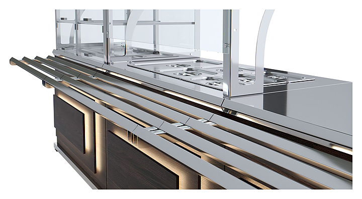 Кассовый прилавок Luxstahl КК-1200 Premium Pafos используется на предприятиях общественного питания и торговли для оборудования рабочего места продавца-кассира. Модель оснащена розеткой для подключения кредитно-кассового аппарата и вместительной полкой в нише. Каркас выполнен из нержавеющей стали AISI 430 толщиной 1 мм, фасад - из ЛДСП, направляющая для подносов - из профильной трубы 25х25 мм. Особенности: