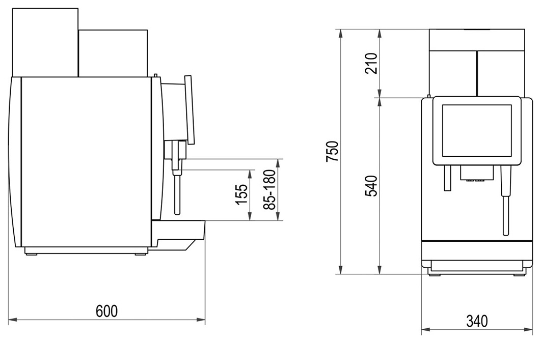 Возможность подключения модуля внешней молочной системы для интеграции в холодильник заказчика для 1 или 2 типов молока (приобретается отдельно)