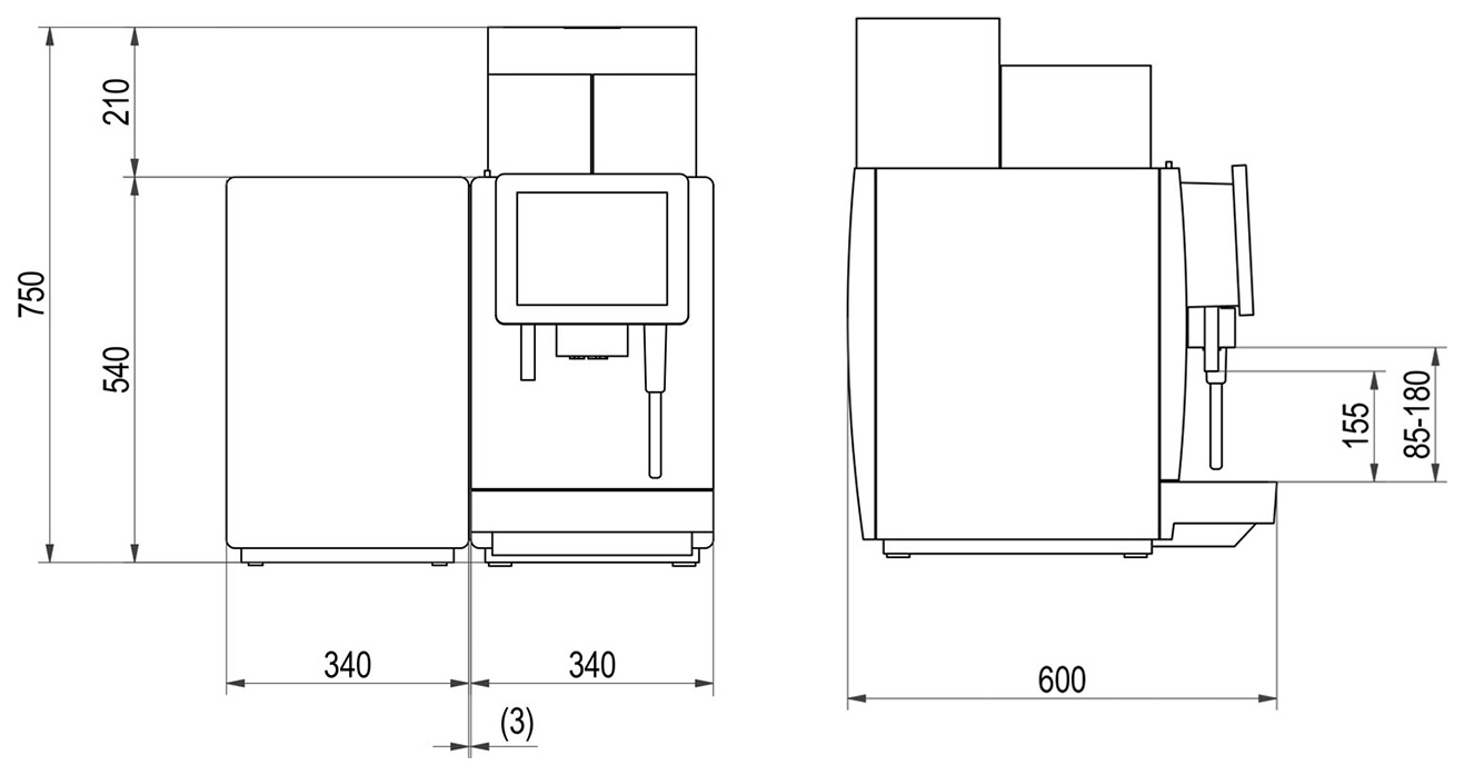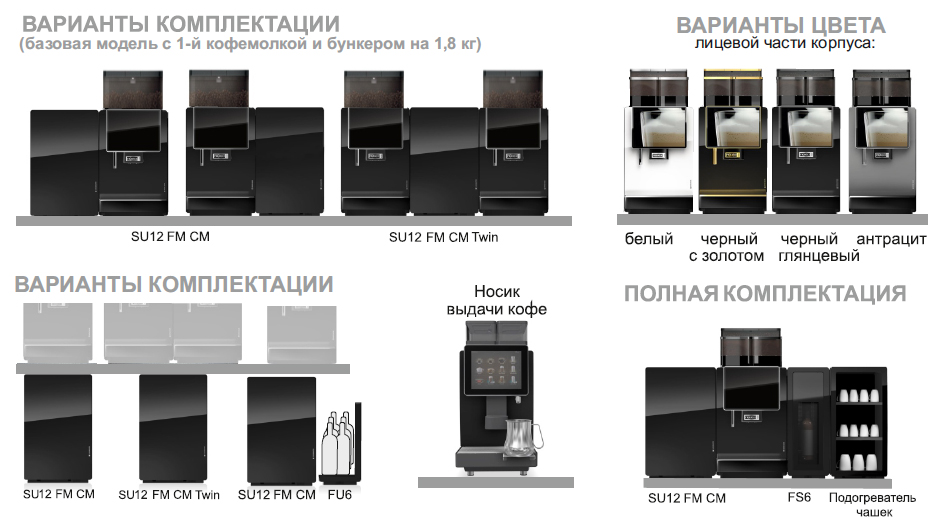 Возможность установки до 3 кофейных бункеров с отдельными кофемолками (приобретаются отдельно)