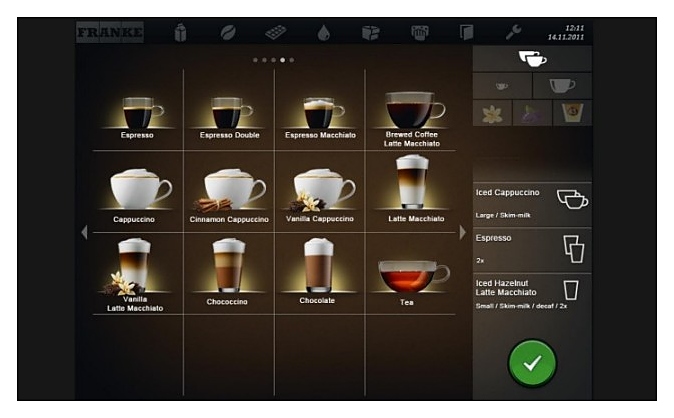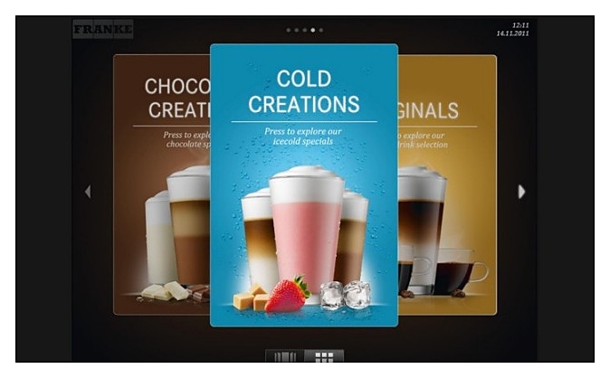 Кофемашина Franke A1000 FM СМ 1G H1 + SU12 FM CM используется на предприятиях общественного питания и торговли, в офисах и отелях для приготовления чая, кофе и кофейных напитков. Модель оснащена интерактивным сенсорным экраном диагональю 10,4 дюйма с 3 различными интуитивно понятными режимами работы и возможностью демонстрации изображений, видео- и аудиофайлов во время приготовления напитков и в качестве заставки.