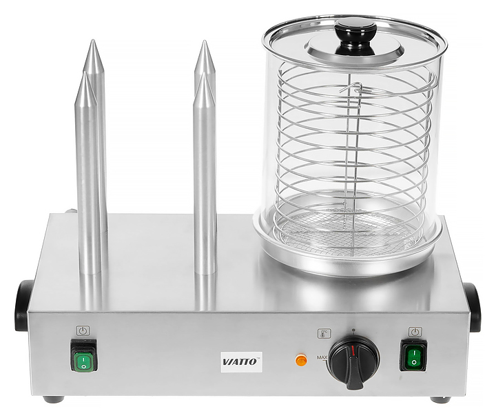 Аппарат для хот-догов VIATTO HHD-1 предназначен для подогрева булочек и сосисок на предприятиях общественного питания и торговли. Модель работает по принципу парового нагрева и оснащена контейнером для сосисок с 2 отсеками. Дополнительные характеристики: