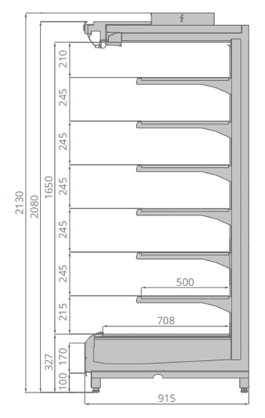 Холодильная горка Brandford Tesey Compact 250 предназначена для демонстрации, охлаждения и кратковременного хранения гастрономических товаров на предприятиях общественного питания и торговли. Модель оснащена 6 рядами регулируемых полок с ценникодержателями, верхней светодиодной подсветкой внутреннего объема. Благодаря ультратонким профилям, расширяется площадь выкладки до уникальных значений. Благодаря эффективному использованию полезного объема Tesey позволяет загрузить на 25% больше охлаждаемых продуктов, по сравнению с оборудованием других производителей. Боковины в комплект поставки не входят и приобретаются отдельно. Особенности: