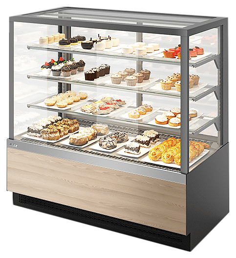 Кондитерская витрина Chilz VETE KUB LUX 130 предназначена для демонстрации, охлаждения и краткосрочного хранения кондитерских изделий, закусок и десертов на предприятиях общественного питания и торговли. Модель оснащена 4 полками. Оборудование работает при температуре окружающей среды 25 °С и влажности 60%. Особенности: